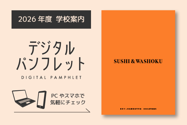 伝統的な会席料理、郷土料理からはじまり、すし、そば、うなぎ、天ぷらなどの専門料理、 さらには海外食から変化をとげたカレーやラーメン、餃子、とんかつ、オムライスなど、世界中から美味しいと注目されている “WASHOKU”。 そのすべてを学べるのが「東京すし和食調理専門学校」です。