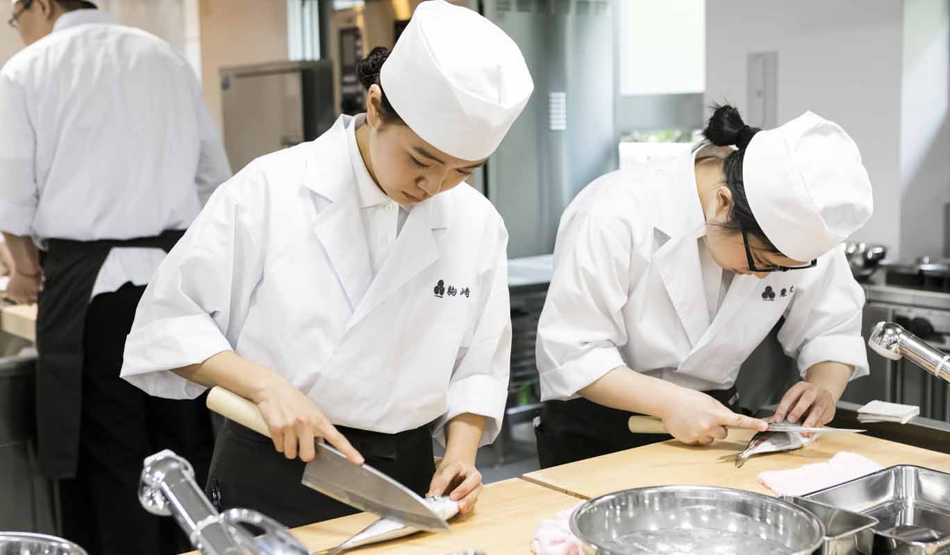 In addition to mastering the specialized techniques of washoku and sushi, such as making traditional Edo-mae nigiri sushi (hand-formed sushi) and course cuisine prepared under the supervision of Ginza Kojyu restaurant, you will also learn about the various types of Japanese cuisine that are eaten on a daily basis, including curry, ramen, and Japanese-style Western cuisine. Students also study the cultural background and elements of washoku, such as tools, tableware, Japanese sweets and tea. Our aim is to train you to be chefs who can think flexibly from a variety of perspectives.