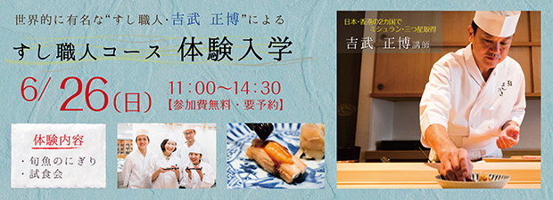 2か国で三ツ星取得のすし職人・吉武氏による体験入学