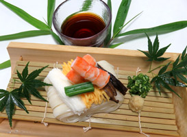 ≪海老しんじょうのお椀と焼きアナゴとトウモロコシの土鍋ご飯≫