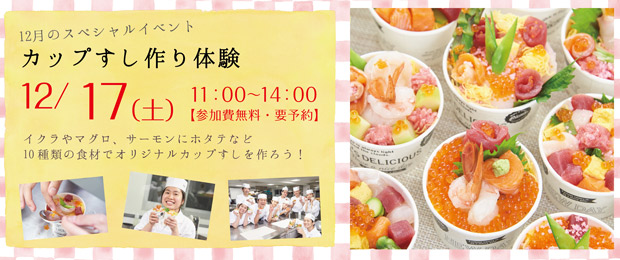 彩り鮮やかな食材をカップに盛り付ける「カップすし」を作る体験入学を開催します。