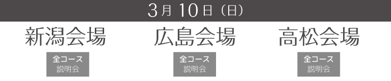 名古屋・松本・沼津・金沢・福岡・新潟・広島・高松の8都市にて、学校説明会を開催します。