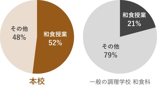 和食を学ぶ専門カリキュラムの時間数は、一般の調理学校和食科に比べ2年間で約2倍。本物の和食教育にはそれだけの時間が必要だからです。