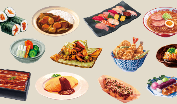伝統的な会席料理、郷土料理からはじまり、すし、そば、うなぎ、天ぷらなどの専門料理、 さらには海外食から変化をとげたカレーやラーメン、餃子、とんかつ、オムライスなど、世界中から美味しいと注目されている “WASHOKU”。 そのすべてを学べるのが「東京すし和食調理専門学校」です。