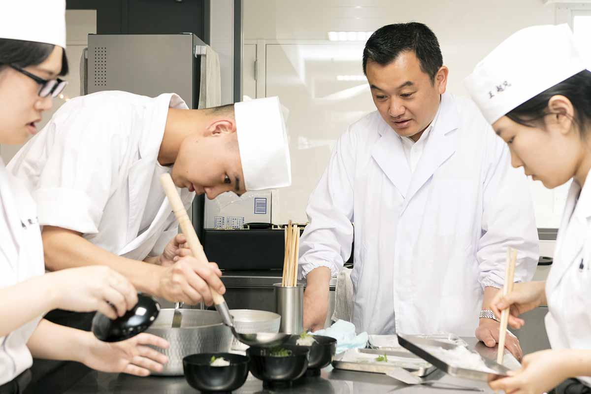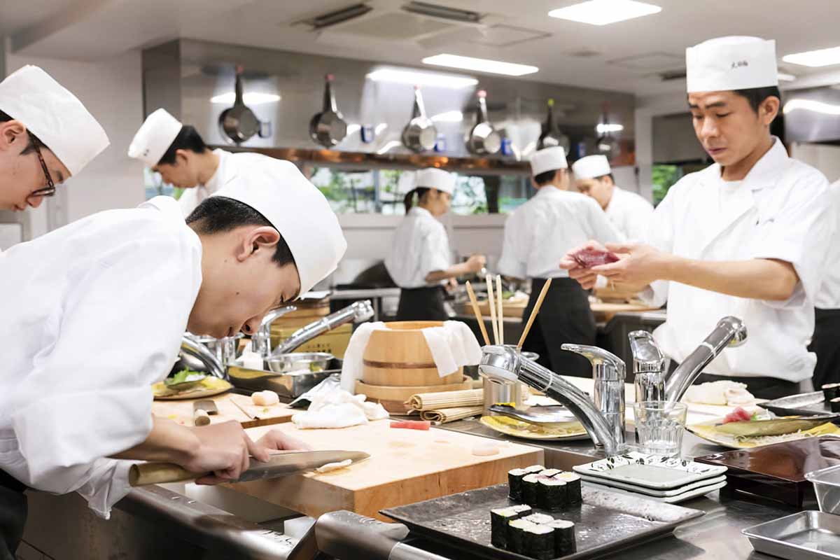 獲聘指導學生的講師群皆為於國際間獲得極高評價的知名和食大廚 與壽司師傅。該名店菜單直接用於授課內容,因此可以直接向活躍 於和食界最前線,引領「當下」潮流的專家們學習請益最先端、最高峰的知識與技術。