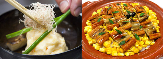 ≪海老しんじょうのお椀と焼きアナゴとトウモロコシの土鍋ご飯≫