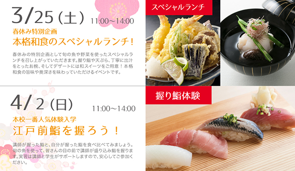 4月2日(日)11:00~14:00 本校一番人気体験入学「江戸前鮨を握ろう!」